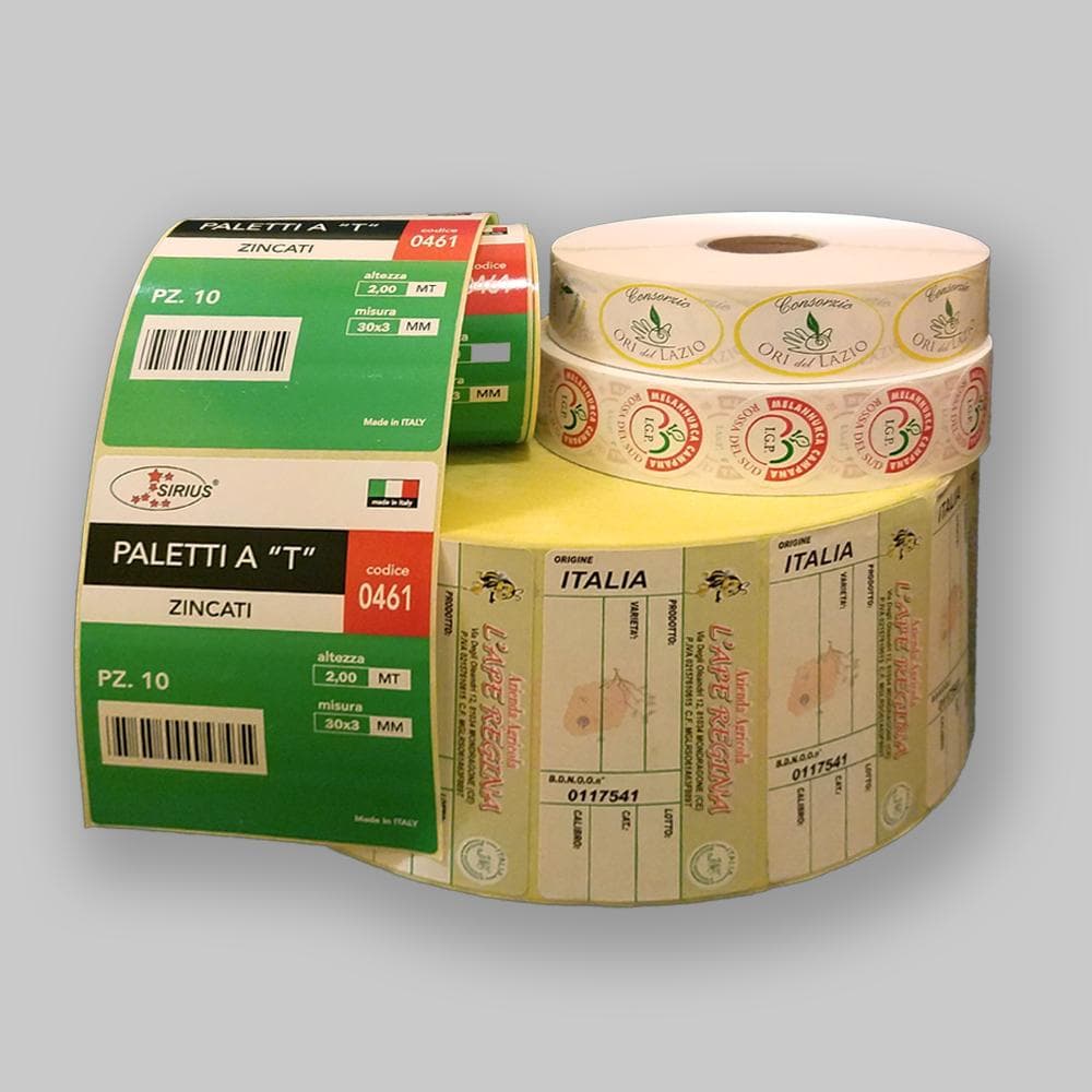 Real Rotoli stampa e pre-stampa etichette adesive per la maggior parte dei settori: alimentare, logistico, ortofrutta e molto altro. Vengono prodotte etichette adesive per ogni tipologia di supporto, in diversi materiali, quali: carta vellum o patinata, carta termica, polipropilene. Etichette antieffrazione o antimanomissione, etichette removibili, adesive per esterno, per surgelati, materiali adatti al contatto alimentare e cartellini in cartoncino, mentre la produzione di rotoli in carta comprende articoli per i registratori di cassa, per i pos, bilance, ricevitorie, plotter di piccole e grandi dimensioni.